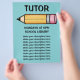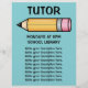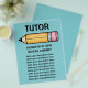 Este papel de tutor de matemática personalizável apresenta uma ilustração de lápis de desenho animado amarelo com uma borracha rosa em cima. A cor do fundo é azul.
