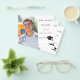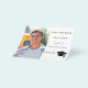 On front: Add your own vertical size photo of the graduate. A chic white background, black text. Templates for a name and date. The name is written with a modern hand lettered style script. With a cap, tassel topper.