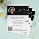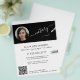 Modern trendy script professional legal certified notary attorney at law consultant custom personalized black and white promotional flyer with elegant calligraphy and pens. +++++++++++ Easy to personalize with your photo and your automatically generated scanning QR CODE to your website or social media.