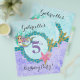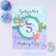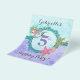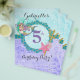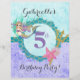 Malha de Aquarela, conchas, tridente, escamas e estrela-do-mar com Festa de aniversário Idade e Nome em Roxo, Aqua & Teal com bolhas e Acentos de Largura Dourados. Uma design de sereia gira divertida com Texto Personalizado.