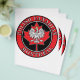 Mostre seu orgulho polonês na sua cidade natal canadense ou na sua cidade natal ancestral. Este belo design redondo apresenta uma folha vermelha de bordo da bandeira do Canadá com uma camada de águia branca polonesa e as palavras canadense e Montreal polonês num anel vermelho.