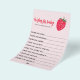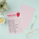 Crie memórias duradouras com nosso 'Morango Rosa e Vermelho Deseja um Cartão de Bebê'. Este cartão encantador, adorado com ilustrações de morango doces em rosa e vermelho vibrantes, é perfeito para os convidados compartilharem seus sentidos desejos pelo novo bebê. Ideal para um chá de fraldas morango, essas cartas permitem que amigos e familiares deixem palavras de sabedoria, esperanças, e sonhos para os pequenos, fazer-os de uma reserva tesoura para os futuros pais."