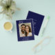 Announce your special day in style with this modern navy blue Save the Date. Featuring your favorite photo framed by a minimalist white line border, it perfectly blends timeless elegance with a personal touch. The handwritten script adds a romantic detail, while the clean layout keeps the design contemporary and easy to customize.