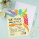 Precisamos de sua ajuda para o trabalho voluntário de caridade, anúncio minimalista do folheto modelo apresenta mãos coloridas, corações vermelhos, fundo amarelo suave e tipografia profissional. Personalize o modelo para seu gosto.
