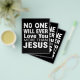 Ninguém jamais te amará mais do que Jesus, este design cristão mostra texto dizendo "Ninguém jamais te amará mais do que Jesus", em preto e branco.