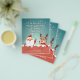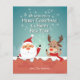 Papai Noel e as renas dando um aceno enquanto estão em pé no topo da chaminé. Cartão de Natal fofo que simplesmente diz "Nós desejamos um Feliz Natal e um Feliz Ano Novo".