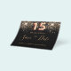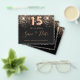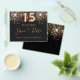 Observe que esta opção Save the date (Salvar a data) está no papel do folheto e muito fina. Os envelopes não estão incluídos. Para salvar o cartão Data (mesmo design) mais espesso, visite nossa loja. Uma garota e uma moda Salvem a data para uma Quinceañera, 15 festa de aniversário. Um fundo preto decorado com falso brilho dourado. Modelos de uma data, nome e texto. Letras coloridas com ouro. O texto: Salvar a Data é gravado com um script de estilo com letra de tendência grande.