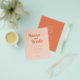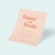 Um convite de casamento com a tipografia laranja retrorada é uma na moda e uma escolha única para uma ocasião especial. As letras laranja brilhantes e ousadas destacam-se contra o fundo de pêssego claro, criando um contraste visual impressionante. O convite é ainda reforçado pela adição de detalhes de design de sol e flor, acrescentando um toque de capricho e brincadeira ao design geral. O sol e as flores adicionam uma vibração alegre e alegre ao convite, fazer-o perfeito para uma celebração de casamento divertida e memorável.