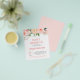 Personalize este rosa esbranquiçado, branco e coral - Estilo de Primavera de cor d'água elegante e moderno Baby Brunch Baby Sprinkle Convite sobre fundo branco com sua mensagem e detalhes. Este convite amigável ao orçamento de na moda inclui flores rosa e verde botânico moderno com tipografia fofa e elegante para a celebração especial da Mãe a Ser.