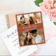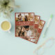 Orçamento elegante moderno script terracotta ferrugem laranja queimada boho deserto 3 colagem de fotos casamento save the date anúncio personalizado acessível baixo orçamento flyer. Design minimalista chique modelo apresenta três (3) colagem de fotos do casal e tipografia elegante cursiva mão letra script texto „Save the Date”.