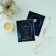 Item de casamento com tema de noite estrelada em azul, prata e dourado moderno, com layout de tipografia trendy. Este item de casamento faz parte de uma coleção maior que inclui convites de casamento (orçamento e tradicional), cartões de RSVP, Save the Dates, sinal de boas-vindas de casamento e muito mais. Visualize a coleção anexa para ver todos. Este design elegante e moderno é perfeito para o seu casamento sofisticado, seja na primavera, verão, outono ou inverno. 🎨 Design por LeahG® weddingdesignchic.com e 100xgifts.com. 📌 FIXE isto no seu painel de inspiração de casamento no Pinterest. ⬇️ VEJA TODOS OS PRODUTOS COM ESTE DESIGN PELA ABA ABAIXO ⬇️