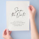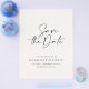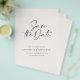 Flyer moderno de typografia elegante para salvar a data do casamento. Com tipografia moderna e elegante e design de fundo listrado. As cores podem ser personalizadas.
