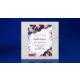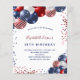 Um fundo branco chic. Decorado com balões coloridos patrióticos em vermelho, azul e branco. Personalize e adicione um nome e detalhes da festa. O nome é escrito com uma fonte de letra manuscrita.