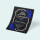 Convite de festa de Quinceanera em prata, preto e azul real. Características incluem fonte manuscrita, rosas azuis reais, tiara e confetes. Design sofisticado em azul safira com detalhes em prata brilhante. Perfeito para uma celebração elegante e glamorosa. *** Por favor, note que este design será impresso em um papel muito fino e não acompanha envelopes. Perfeito para convites econômicos. Se você está procurando pelo mesmo design, mas em papel mais grosso, visite nossa loja.