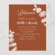 Por favor, note que este programa está no papel folheto e muito fino. Os envelopes não estão incluídos. Para convites mais espessos (mesmo design) visite nossa loja. Fundo laranja escuro queimado, decorado com caules de eucalipto, galhos. Personalize e adicione seus nomes e detalhes.