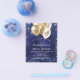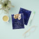 Por favor, note que este convite está no papel de folheto e é muito fino. Os envelopes não estão incluídos. Para convites mais espessos (mesmo design) visite nossa loja. Um chá de panela moderno, na moda e glamouroso. Um fundo azul marinho, decorado com brilho e cintilações douradas falsas e balões ouros. A cor azul é irregular. Personalize e adicione um nome e detalhes da parte.