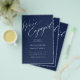 Simples caligrafia química escura azul marinho escuro, estamos engajados no roteiro de convite para festa de noivado de orçamento PAPER FLYER (tipo de anúncio adequado para mala direta). ++++++++++++++++++ LEIA ISSO ANTES DE COMPRAR! Este é um convite de casamento de orçamento baixo impresso em um FLYER. +++ Observe que o PAPEL ORÇAMENTAL É THIN - Você pode fazer upgrade para que este cartão seja impresso no estoque de cartão +++ ENVELOPES NÃO INCLUÍDO. +++ Verifique todas as informações e ortografia do seu texto porque você receberá exatamente o que você vê - ninguém mais verificará nada antes de imprimir. +++ Esta placa foi projetada para o tamanho de 5,5" x 8,5".