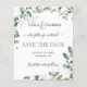 Um matrimônio de eucalipto rustico e amigável salvará o folheto de data. Para manter o preço baixo, o design é impresso em papel do folheto de valor. Observe que os envelopes não estão incluídos.