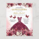 Celebre seu dia especial com o Convite à Princesa Quinceañera Floral Burgundy Butterfly. Este elegante design apresenta matizes robustos adormecidos com delicados sotaques florais e borboletas, simbolizando beleza e transformação. Perfeito para uma quinceñera, temática princesa, o convite capta a essência da graça e da sofisticação. Os detalhes intrincados e as cores vibrantes definem o tom para uma celebração inesquecível, convidando seus convidados a se juntar a este evento uma vez na vida. Torne a sua quinceañera mágica com este eterno incrível que reflete o seu estilo e charme.