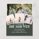 ⭐ Design by LeahG™ Fundadora da Low Budget Wedding Network®. Parabéns pelo seu noivado. 📌 Fixe este design no seu painel de inspiração para o casamento no Pinterest e aproveite a sua jornada de planejamento de casamento. 🥰 Seus amigos e familiares vão adorar este anúncio de noivado ou convite de festa moderno e trendy com colagem de 4 fotos. Frente e verso para garantir que você possa adicionar todos os detalhes do evento. Texto moderno sobreposto que diz "Finalmente, ela disse sim!". Você pode EDITAR ISSO para dizer qualquer outra coisa, como "Nós estamos fazendo isso", "nós estamos nos casando", "nós vamos dizer sim" e muito mais! Seja criativo. 🖊️ Muitos fundos de cores para escolher e opções de baixo orçamento (a partir de 0,30) veja a coleção anexa para ver todos. ⭐ OBSERVE que o peso e o tamanho do papel refletem nos preços. Para cartão padrão (5x7) use a opção TRANSFERIR na página do seu produto. A maioria dos meus designs inclui campos de modelo em ambos os lados (onde permitido pelo produto) para garantir que você obtenha o máximo valor e benefício prático. No caso de convites, isso permite incluir RSVP, lista de presentes, site do casamento, detalhes da recepção e, nos designs mais recentes, um código de leitura QR. Para outros itens, você pode adicionar texto ou