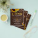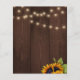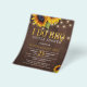 Elegante rústico verão ou outono convite de chá de casal BBQ POR ORÇAMENTO modelo de folheto de convite acessível em madeira de celeiro marrom escuro apresentando buquês de girassóis amarelos dourados e luzes cintilantes. Fácil de personalizar com seus detalhes. O convite é adequado para festas de engajamento ao ar livre no jardício, no quintal, com estilo floral country chic. POR FAVOR LEIA ISSO ANTES DE COMPRAR! Este é um cartão de casamento POR ORÇAMENTO impresso em um FOLHETO. Por favor, note que o PAPEL POR ORÇAMENTO É FINO - Você pode atualizar para ter este cartão impresso em papel cartão ENVELOPES NÃO INCLUSOS. Verifique duas vezes todas as informações e ortografia do seu texto porque você receberá exatamente o que vê - ninguém mais verificará nada antes da impressão. Este cartão é projetado para o tamanho 4,5 "x 5,6". No caso de você escolher outro tamanho do cartão e o texto sair fora da