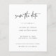 Convite de Save the Date de Orçamento Mínimo - um cartão de Save the Date de casamento com caligrafia manuscrita em preto e branco com um verso preto sólido. Este cartão de Save the Date acessível é a versão econômica do design do cartão principal de Save the Date da minha coleção, impresso em papel leve. Por favor, verifique a descrição do produto para detalhes sobre o papel e a impressão! Encontre outros itens de papelaria correspondentes na minha "Suite de Casamento de Caligrafia Manuscrita Moderna".