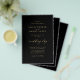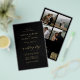 Elegante simples minimalista romântico orçamento acessível tudo em um RSVP e detalhes do convidado modelo de convite de casamento preto em papel flyer apresentando uma caligrafia manuscrita em ouro falso elegante sofisticada chic na moda, um código QR de varredura (gerado automaticamente com o link do seu site) e 4 colagens de fotos personalizadas. ++++++++++++ Fácil de personalizar com suas fotos e detalhes do noivado em ambos os lados! O convite é adequado para casamentos modernos da moda e estilosos da primavera, verão, outono e inverno. +++++++++++++++++++++++++ POR FAVOR LEIA ISSO ANTES DE COMPRAR! Este é um convite de casamento de baixo orçamento impresso em um FLYER (papel tipo publicidade). ++++ Observe que o PAPEL ORÇAMENTO É FINO - Você pode atualizar para ter este cartão impresso em papel cartão ++++ ENVELOPES NÃO INCLUS
