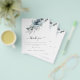 Uma alternativa de alta qualidade e baixo custo ao FOLHETO DE PAPEL 4,5” x 5,6” SEM ENVELOPES. Florais natalinos em tons de azul teal e azul empoeirado descem do topo acima do texto elegante centralizado abaixo. Personalize facilmente o texto com seus próprios detalhes.