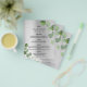 Por favor, note que este menu está no papel folheto e muito fino. Os envelopes não estão incluídos. Para menus mais espessos (mesmo design) visite nossa loja. Um elegante e glamouroso menu de casamento. Personalize e adicione seus nomes, data e menu de casamento. Fundo metálico de aspecto fino prateado, decorado com poeira falsa brilhante.