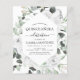 Rosa branco de orçamento e Eucalyptus Botanical Greenery Primavera de aquañera ou Summer Quinceañera Celebration - inclui uma bela e elegante tipografia escrita com flores botânicas modernas e verde para a Festa de aniversário especial.