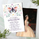 Orçamento Quinceañera Moderna Borboleta Rosa Púrpura Foto Convite Floral Apresenta uma borboleta rosa simples, mas elegante e roxa entre flores bonito com a sua informação de Convite Quinceañera abaixo. Personalize editando o texto nas caixas de texto fornecidas e adicionando sua foto favorita. Projetado para você por ©Evco Studio www.zazzle.com/store/evcostudio