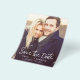 Retrato de Script Manuscrito Moderno e Elegante Vertical Foto do Orçamento Salve o Cartão de Casamento de Data. O cartão de convite para salvar data inclui uma tipografia de chic e na moda com um design simples e minimalista sobre fundo branco ao qual você pode adicionar sua fotografia personalizada de noivado.