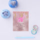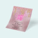 O charme feminino e glamouroso é a essência deste convite de aniversário de 16 anos falso em rosa e dourado com brilho, para festa de debutante. Os campos de texto modelo em ambos os lados permitem que você inclua RSVP, lista de presentes e quaisquer outros detalhes do evento da festa sweet16 conforme necessário.