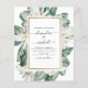 As Flores Tropicais Orçamentárias com Palma Verde Floral e Primavera Geométrico de Folha de Ouro Faux ou Convites de Casamento de Verão - incluem uma bela e elegante tipografia de guião com flores botânicas tropicais modernas e verde para a celebração especial do Dia de Casamento.