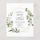 "Apresentando Nosso Convite De Casamento De Barato! Torne seu dia especial memorável sem quebrar o banco! Nosso convite de casamento amigável apresenta uma ilustração encantadora de folhas de eucalipto aquáticas em uma estrutura geométrica, acrescentando um toque de elegância natural. Dentro, encontre os detalhes em uma fonte serif elegante, com a palavra 'e' na escrita moderna para um sentimento contemporâneo. Na parte traseira, você encontrará seu código QR para um acesso digital fácil, juntamente com RSVP e detalhes adicionais. Celebrar o amor de forma econômica e bela!
