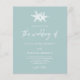 Este moderno orçamento mínimo convite para casamento em praia de vidro marinho é perfeito para casamentos temáticos costeiros, e tem duas estrelas-do-mar no topo, e a caligrafia tradicional com roteiro de letra morta. Este convite para casamento costeiro é de tamanho menor impresso em papel mais barato, sem um envelope. Se você quiser outra versão do orçamento em um papel ligeiramente melhor, COM um envelope que custe um pouco mais, entre em contato comigo através do Zazzle Chat, ou use a opção Transfer para transferir para uma "folha de papel simples" 4,5"x 5,6".