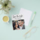 Foto de Script Manuscrito Moderno e Elegante do Orçamento Salve a Ficha de Casamento de Data. O cartão de convite para salvar data inclui uma tipografia de chic e na moda com um design simples e minimalista sobre fundo branco ao qual você pode adicionar sua fotografia personalizada de noivado.