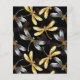 Padrão sem costura com ouro, joias, libélulas brilhantes com asas brilhantes e detalhadas sobre fundo preto. Dourada libélula.
