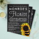 Sunflower e Chalkboard, Panfleto Publicitário Florista da Loja de Cartão de visita.