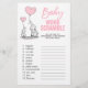 Entra nos teus hóspedes com estes adoráveis cartões de jogos de chá de fraldas com tema de elefante; WORD SCRAMBLE. Mamães de desenho animado e elefante bebê com balões cardíacos; cor rosa e branca. Perfeito para uma festa de bebês. Obter itens correspondentes! 1. LULLABY 2. COBERTO 3. ROLADOR 4. EMBALAGEM 5. RÁCIO 6. FRALDA 7. FRASCO 8. BEBÊ ESPERA 9. TERMÔMETRO 10. BANCO DO CARRO 11. CRIB 12. FÓRMULA