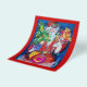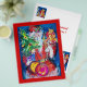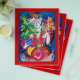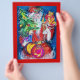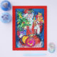 Pintura colorida, branca e artística em acrílico com ornamentos florais, plantas de inverno, brinquedos de bagas ocas e balões.