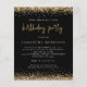Convite de festa de aniversário preto com brilho dourado. Uma ótima opção em PAPEL (não cartão) sem envelopes no tamanho menor 4,5” x 5,6” e a um preço acessível. (Envelopes padrão A6 são o tamanho mais próximo para caber). Preto e dourado glamoroso com uma borda de brilho falso no topo de cada lado, e "aniversário" está em uma fonte estilo escrita à mão. Personalize facilmente o restante do texto com seus próprios detalhes. Você também pode alterar as cores do texto e do fundo através da opção "personalizar mais" se desejar.
