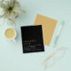 Dourado Mínimo Partido Natal Negro Um alternativo de PAPEL (não cartão) de valor do excelente SEM ENVELOPES com tamanho menor de 4,5" x 5,6" e a um preço orçamentário. (envelopes A6 padrão são o tamanho mais próximo ao ajustado). Negro clássico e ouro com branco com este design totalmente personalizável. O cabeçalho é maior em na moda em minúsculas com os detalhes abaixo.Personalize facilmente o texto e pode ser alterado para qualquer cor de sua escolha através da opção personalizar mais.
