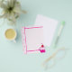 Folhas de papelaria bonitas que apresentam um fundo de rosa claro, listras cor-de-rosa e um cupcake brilhante no canto inferior direito.