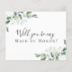 Faça um pedido à sua comitiva de casamento com esta elegante proposta de eucalipto "Você será minha dama de honra?".