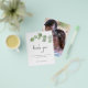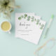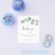 Um alternativo PAPER (não cartão) com valor de excelente SEM ENVELOPES com tamanho menor de 4,5" x 5,6" e a um preço orçamentário. (Os envelopes A6 padrão são do tamanho mais próximo ao ajustado) Imagem de Script Elegante Eucalyptus Leaf Obrigado. Um galho elegante de folhas verdes de eucalipto passa parcialmente do lado direito, com a tipografia definida Obrigado em um estilo moderno de escrita manual. No verso, troque sua foto favorita do dia (de orientação para retratos). O resto do texto na frente você pode facilmente personalizar para suas próprias palavras.