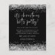 Um alternativo PAPER (não cartão) com valor de excelente SEM ENVELOPES com tamanho menor de 4,5" x 5,6" e a um preço orçamentário. (envelopes A6 padrão são o tamanho mais próximo ao ajustado). Silver Glitter É Natal Vamos Festejar Convidado Negro. Estilo brilhante para sua reunião de Férias com elegante brilho falso prateado nas bordas superior e inferior de ambos os lados e um script de estilo de escrita manual para a principal tipografia de título em um fundo preto clássico com tipografia branca. Personalize facilmente o resto do texto para seus próprios detalhes.