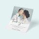 Uma ótima alternativa de PAPEL FINO sem envelopes. Os envelopes padrão A6 são o tamanho mais próximo para caber. Moderno Foto Sobreposta Casamento Agradecimento. Um conjunto elegante de estilo manuscrito para Agradecimento e substitua a imagem de amostra por uma favorita do seu dia. Personalize com sua mensagem e nomes.