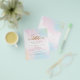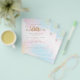 Noivado de Celebração de Script de Coração Cor Azul-Cor-de-Água Rosa. Um alternativo PAPER (não cartão) com valor de excelente SEM ENVELOPES com tamanho menor de 4,5" x 5,6" e a um preço orçamentário. (envelopes A6 padrão são o tamanho mais próximo ao ajustado). Uma bela lavagem com aquarela está no fundo com salpicos de ouro no canto superior direito e inferior esquerdo. Celebração é definida em um roteiro elegante com na moda floresce. Personalize facilmente o resto do texto para você.
