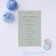 Programa Simples De Casamento Verde De Siltão Suave. Um alternativo PAPER (não cartão) com valor de excelente de 5,5" x 8,5" a um preço orçamentário. Um na moda com um design tipográfico com texto preto em verde-claro para seus programas de casamento, que é totalmente personalizável. O texto, que você pode personalizar facilmente, está centrado em ambos os lados. Você pode alterar as cores do texto e do plano de fundo se quiser combinar o tema da cor do casamento através da opção Personalizar Mais, assim como de outras opções que você precisar. Se precisar de assistência para a edição deste design, por favor, envie-me uma mensagem.